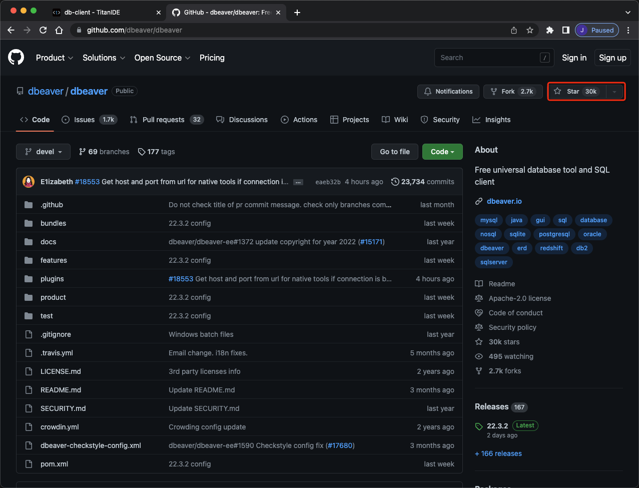 根据心理学家的发现,爱上一个人,仅需要8.2秒,而喜欢一个人,只需要0.4秒。因为眨眼睛的时间是0.2秒,而大脑做决定的时间也就0.2秒而已,也就是一眨眼、一秒内的时间就足以产生最初始的心动。基于此,TitanIDE 和 DBeaver 可以说是一见钟情,接下来我们进一步了解一下这两位主角。